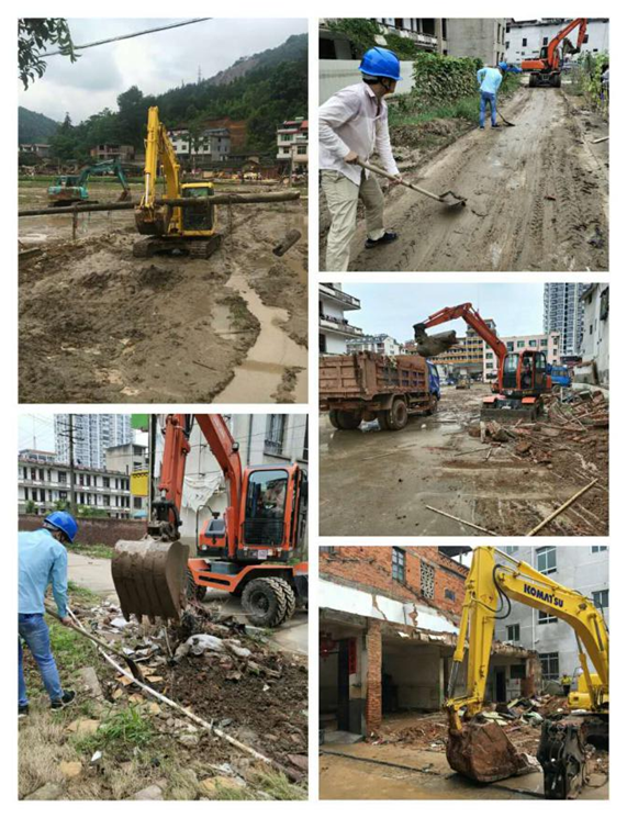 救灾工作期间,福建华航建设集团出动轮式挖掘机、履带式挖掘机等救灾机械,对小陶镇宁洋幼儿园、中坂村毛竹加工厂等单位进行围墙倒塌清理、水泥路面淤泥清理以及受洪水冲刷的设施加固等工作;轮流转战小陶镇老街、劳动村、洋坂头、美坂村等地,帮助拆除遭洪水浸泡的危房,清理、运输倒塌房屋的垃圾废料,恢复倒塌的电线杆,并帮助被洪水淹没的西瓜田清理淤泥,整平田地,为受到损失的农民后期恢复生产生活提供便利;还及时回填小陶镇水坝处洪水冲刷过后的土坑,扫除洪峰过境后的基坑等安全隐患。抢险救灾工作及时且出色,福建华航建设集团得到了当地救灾指挥部多次肯定和赞扬。