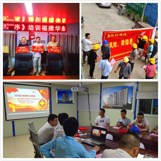 6月是全国第18个“安全生产月”,福建华航集团在此期间围绕“防风险、除隐患、遏事故”主题,在福建、安徽、江苏、重庆、山东、贵州等位于全国各地的项目部开展了系列形式多样、内容丰富的安全生产思想发动、技能培训、知识竞赛、专栏宣传和自查自纠等活动,进一步提高全体员工的安全生产意识,消除安全生产不良隐患,增强项目施工生产的安全防范能力。