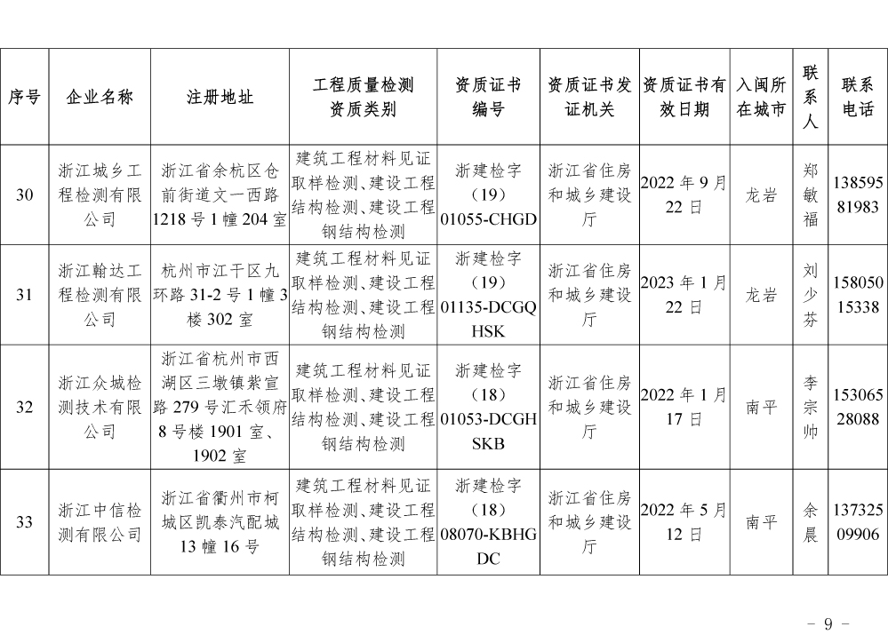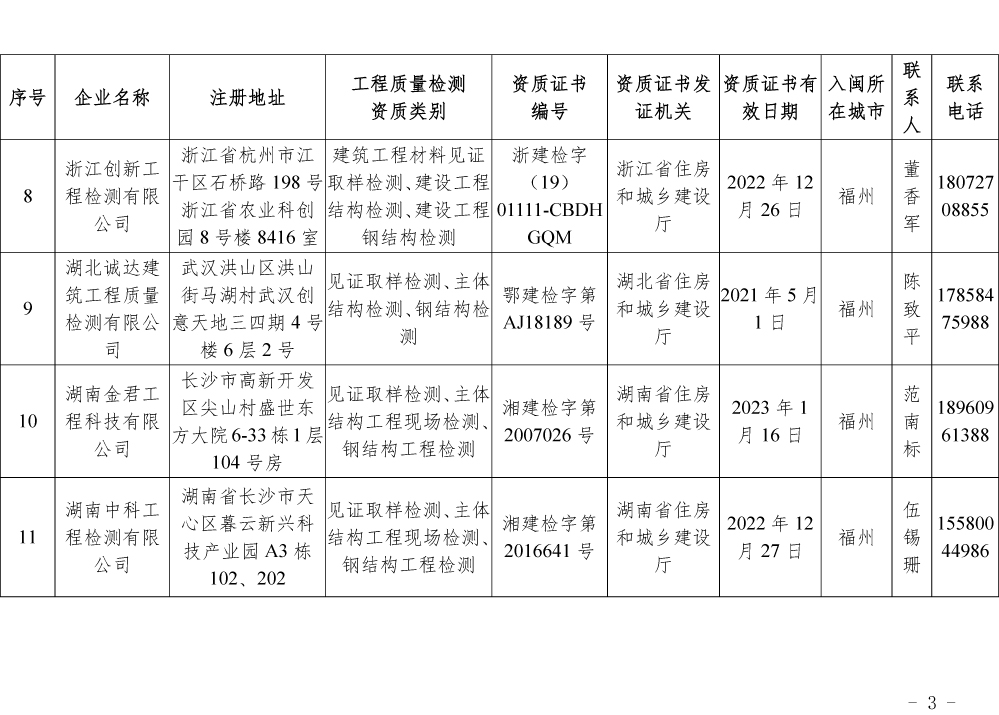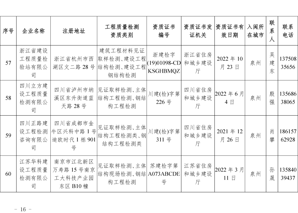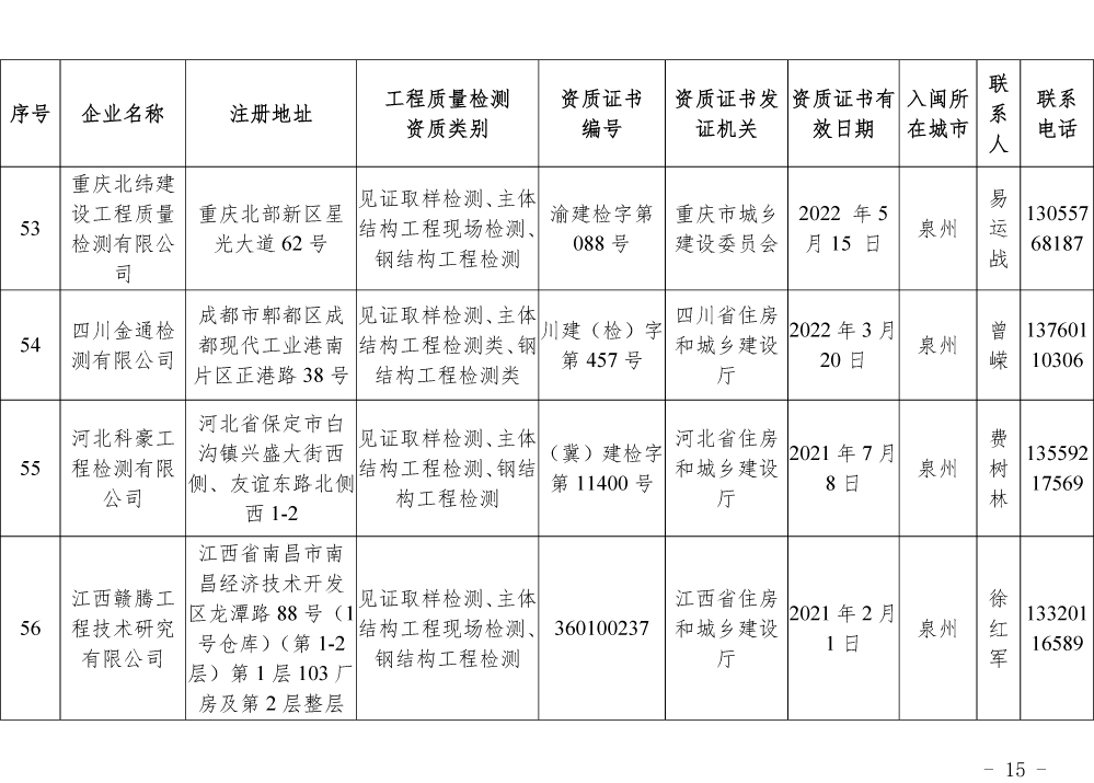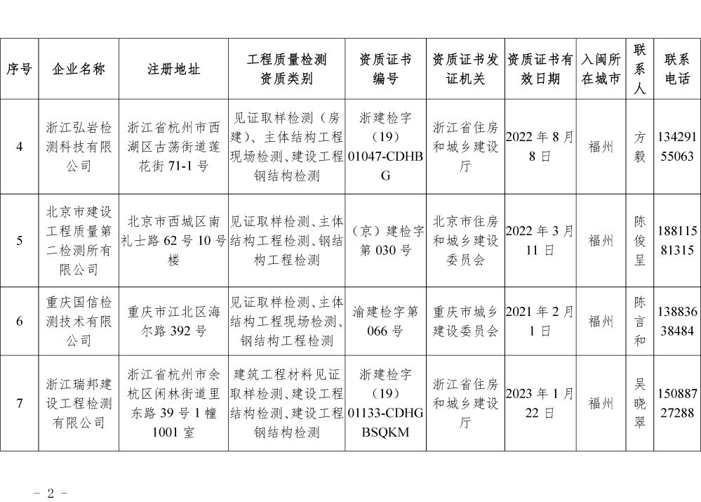 为更好的支持和服务我省房屋安全鉴定工作,截止5月底,共计74家省外建设工程质量检测机构已按照《建设工程质量检测管理办法》(住建部令第141号)有关规定,在我厅办理入闽承担检测业务备案手续,现将74家检测机构名单予以公布。