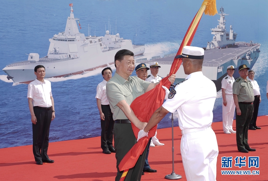 新华社三亚4月24日电(记者李宣良)海军三型主战舰艇——长征18号艇、大连舰、海南舰23日在海南三亚某军港集中交接入列。中共中央总书记、国家主席、中央军委主席习近平出席交接入列活动。