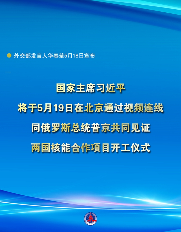 日在北京通过视频连线,同俄罗斯总统普京共同见证两国核能合作项目开工仪式。