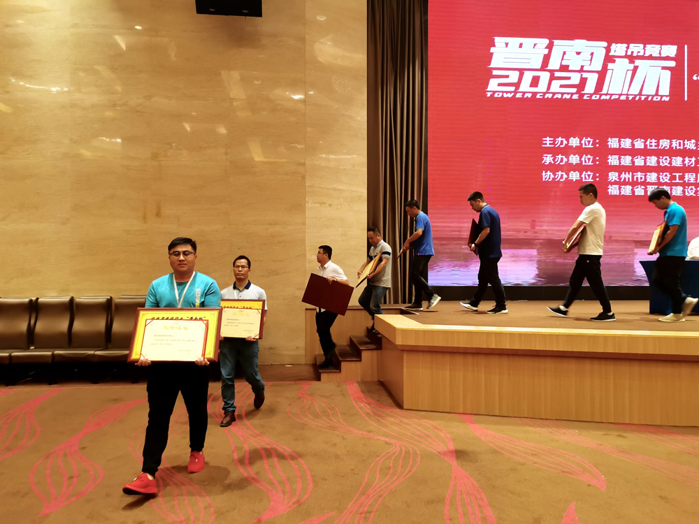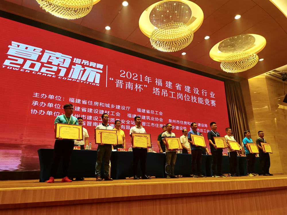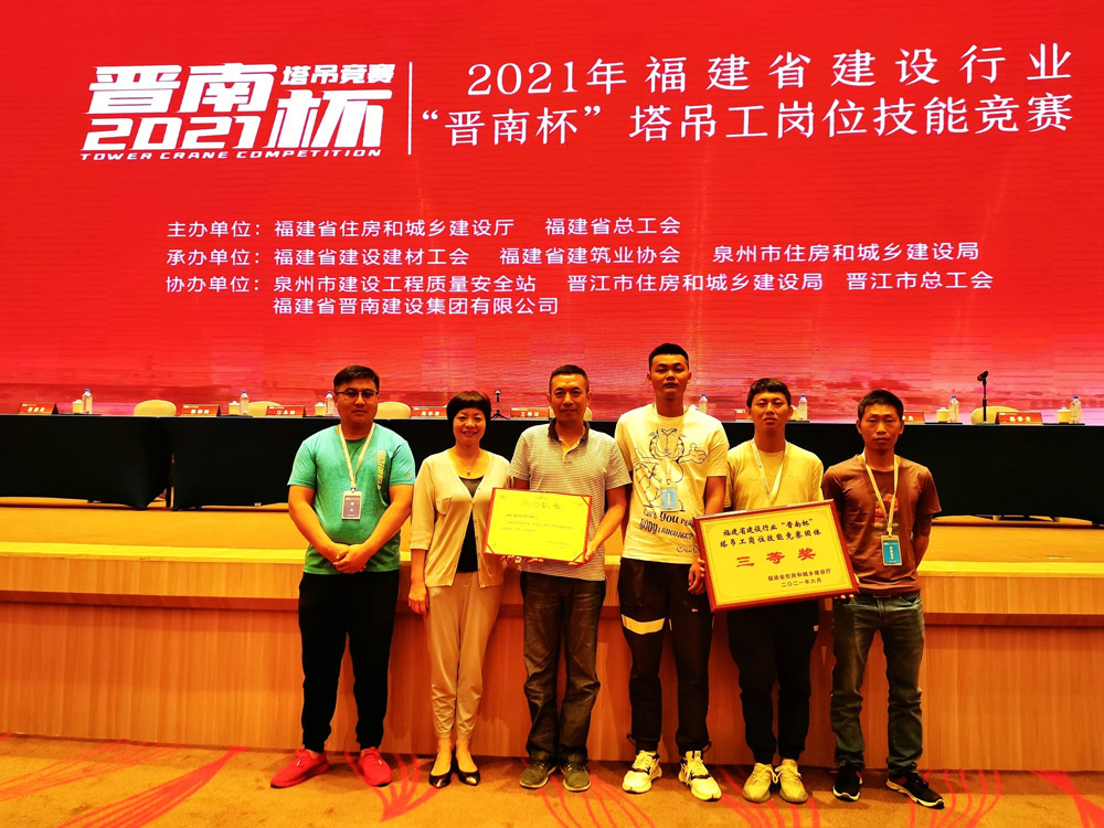 6月8日-10日,由福建省住房与城乡建设厅、福建省总工会主办,福建晋南建设集团有限公司协办的2021年福建省建设行业“晋南杯”塔吊工岗位技能竞赛在泉州火热举办。经过紧张激烈的比赛,福建华航建设集团获得团体奖项第三名,并接受颁奖。