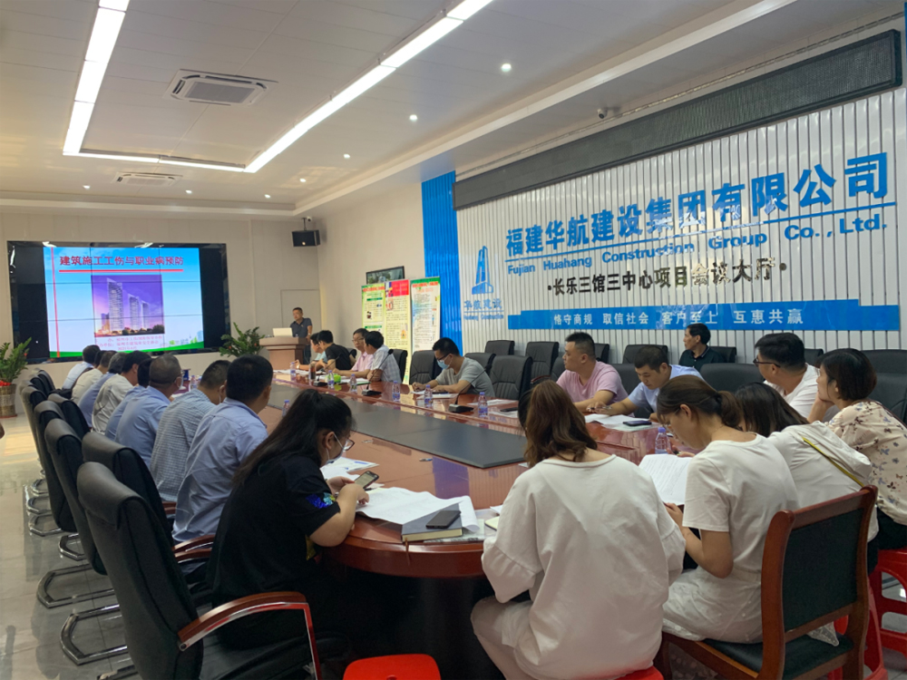 为响应《国务院安委会办公室应急管理部关于开展 2021 年全国“安全生产月” 和“安全生产万里行” 活动的通知》 及贯彻“落实安全责任,推动安全发展”的主题精神。6月11日下午,由福州市工伤预防领导小组主办,市建筑业安全协会承办的“建筑施工工伤与职业病预防宣传”第五期培训班在开云官方端网站登录入口-开云(中国)长乐三馆三中心项目部举办。华航公司副总经理瞿生亮及企业机关和在建项目共计60余人参加了培训会。