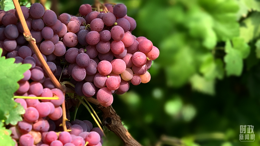 △“红地球”葡萄品种是郝家桥村的脱贫产业之一。(总台央视记者马超拍摄)