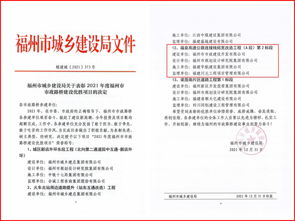 【福州市市政路桥建设优胜项目】