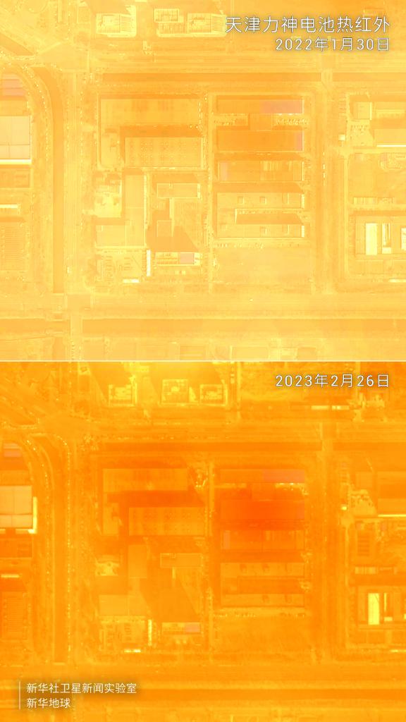这是2022年和2023年天津力神电池生产基地的热红外影像效果对比图。