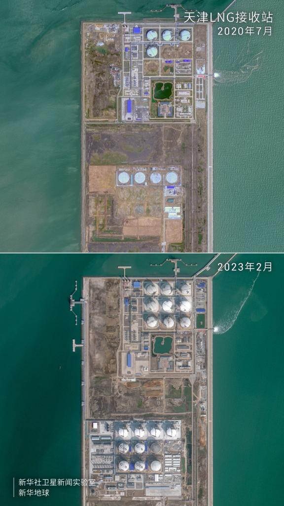 卫星俯瞰天津LNG接收站建设进度。