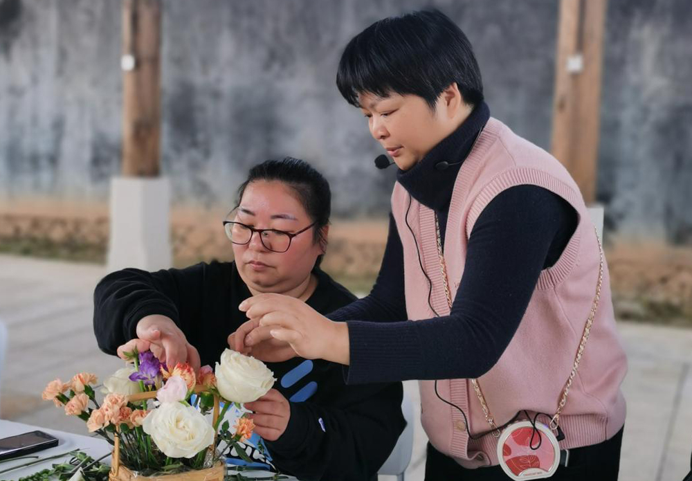 平时忙于家庭和工作的女员工们齐坐在鲜花前,享受着花香和浪漫,思考如何设计自己的花篮。伴随着四溢的花香和欢声笑语,她们发挥自己的创意,做出了不同的花艺作品,并互相分享着插花心得和乐趣,在温馨花艺中体验“花”样幸福。